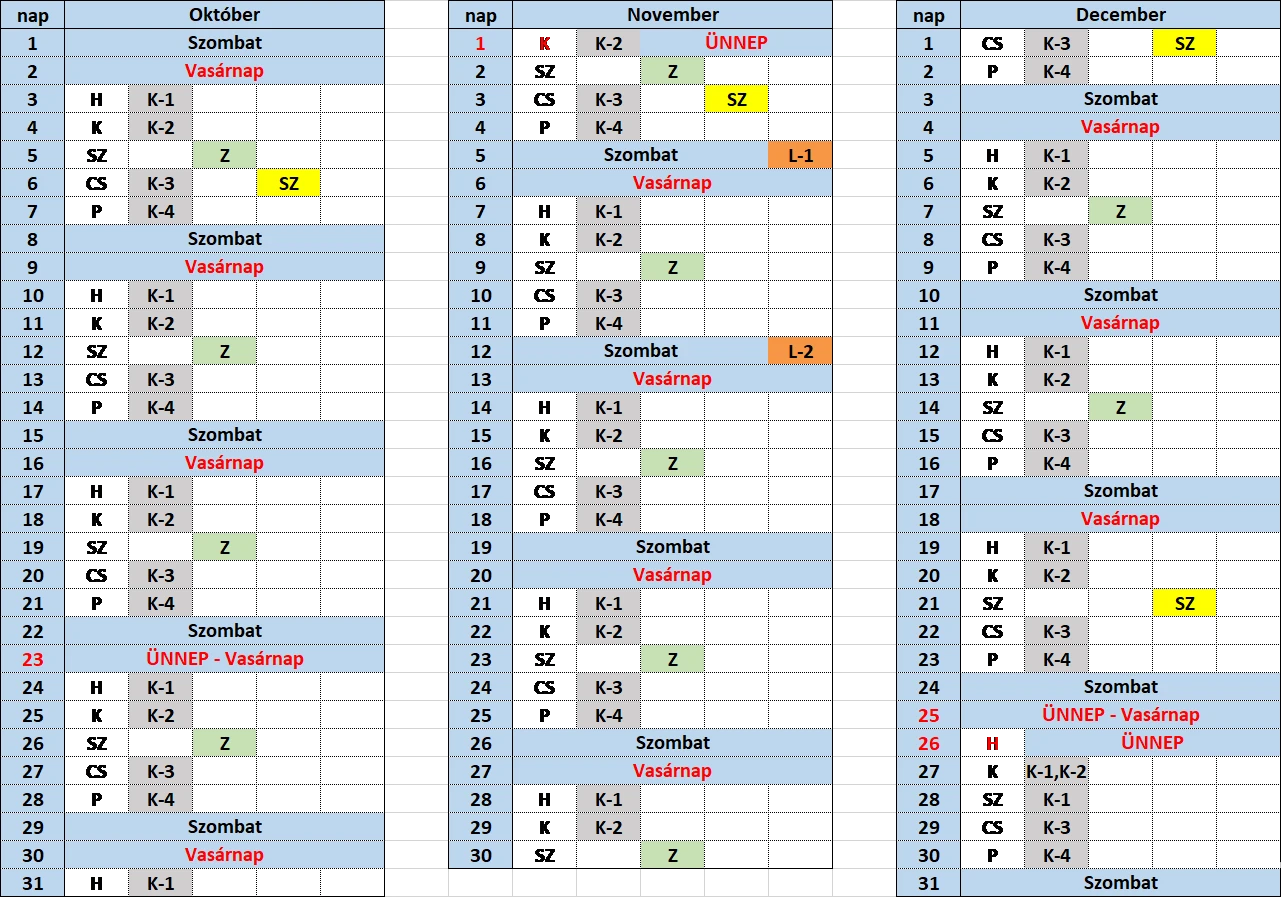 Hétfő Kedd Szerda Csütörtök Péntek |