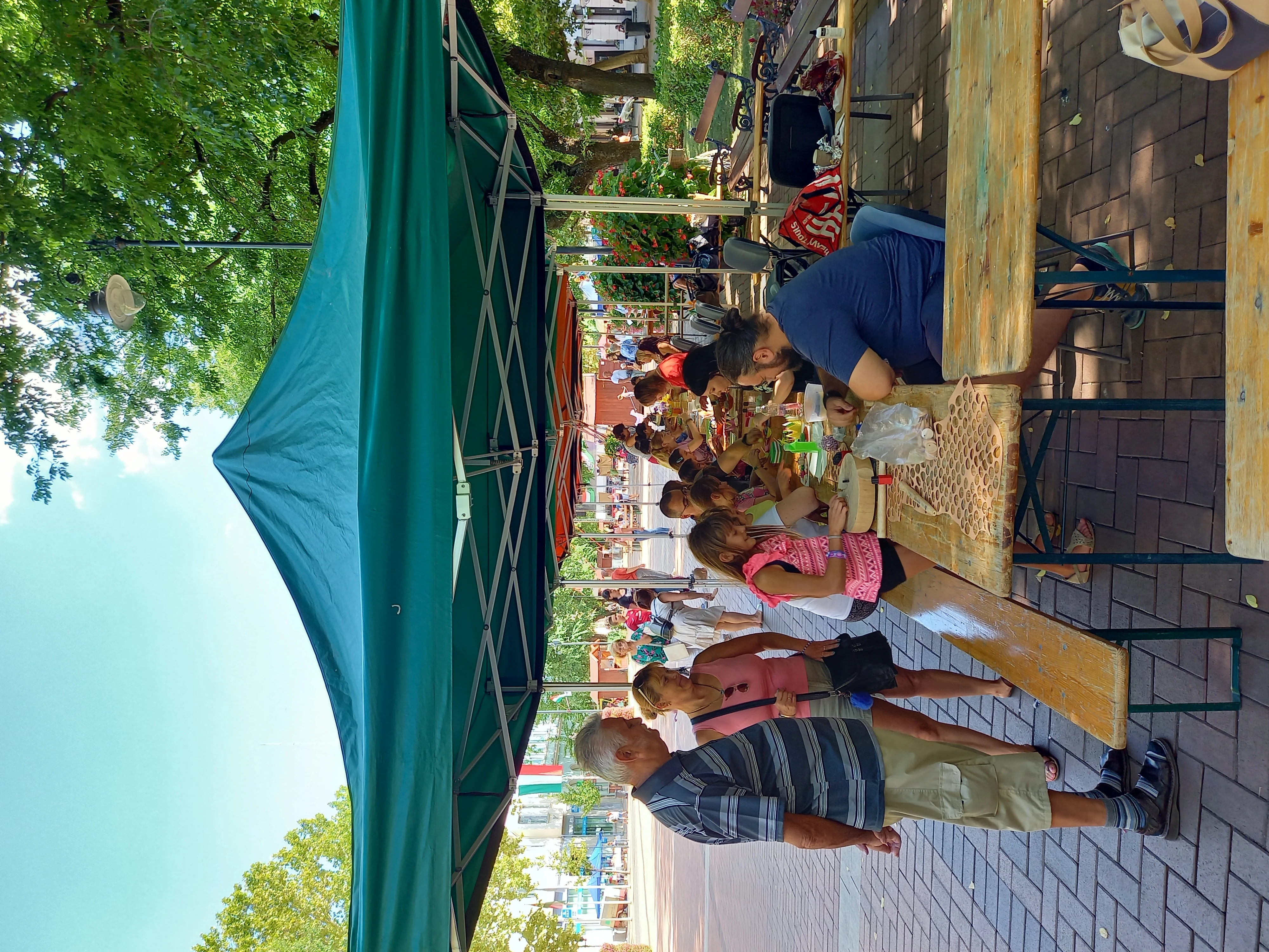 Nagy érdeklődés övezte a délutánt, amelyet a Békéscsabai Napsugár Bábszínház Bolondos mesék című előadása nyitott, majd azt a Lóci játszik zenekar koncertje követte. A színpadi programok mellett folyamatosak voltak a családok, elsősorban gyerekek számára szóló kísérő rendezvények. A Békéscsabai Városvédő és Városszépítő Egyesület képviselői városismereti sétáló totóval várták az érdeklődőket.
