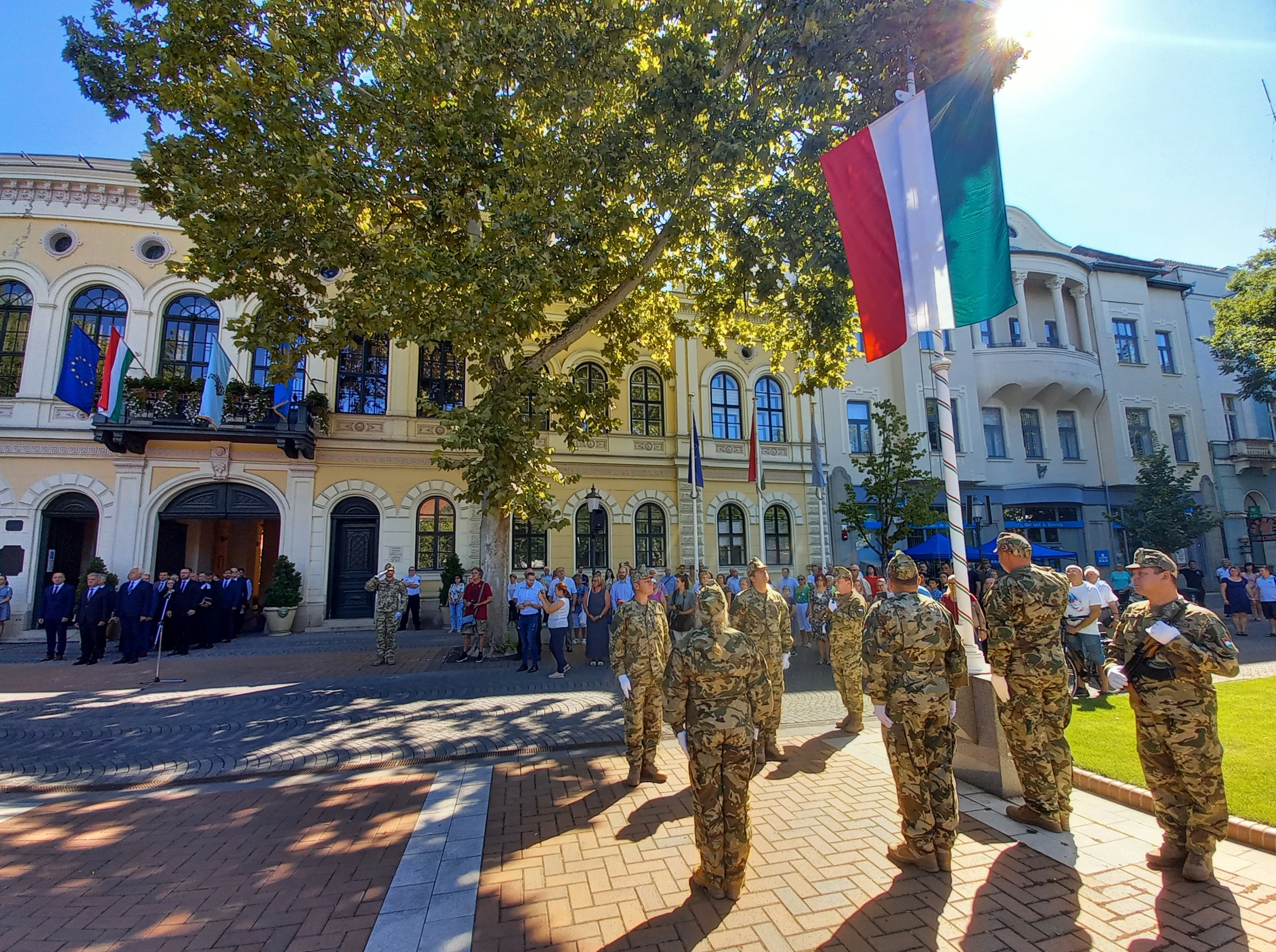 Szarvas Péter polgármester engedélyadását követően az Országzászlót ünnepélyes keretek között a Magyar Honvédség Légi, Műveleti, Vezetési és Irányítási Központ 1. Gerinc Radar Mérőpont katonái vonták fel.
