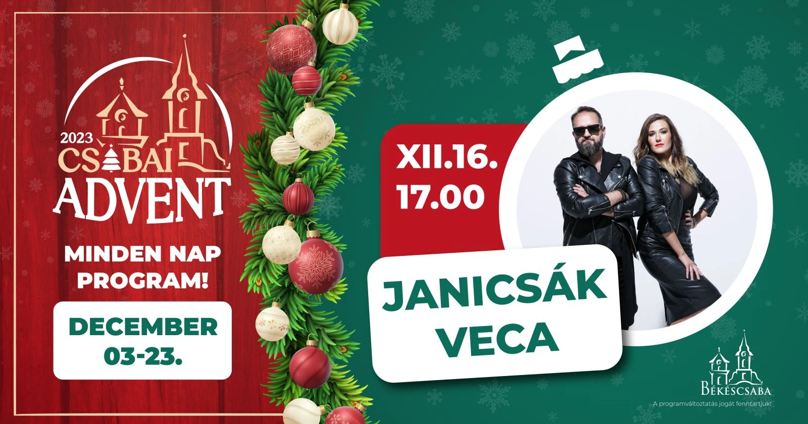 | 17.00 | Körösparti Vasutas Koncert Fúvószenekar (tagjai: Bereczki Gábor, Puskás Sándor, Csapó Dorina, Liska Martin): Adventi kürtvarázs |