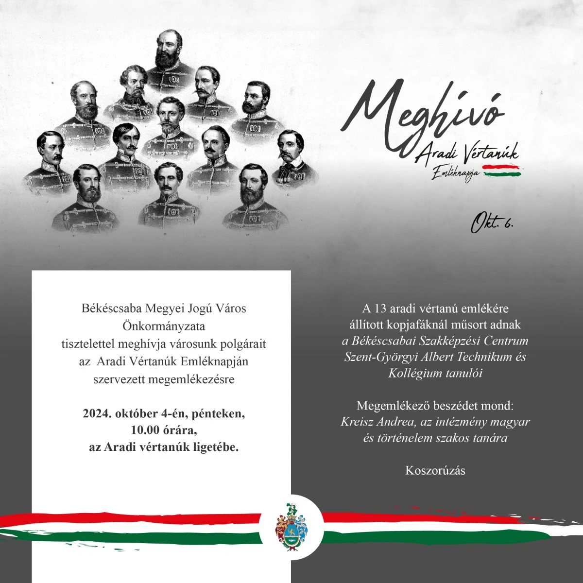 MEGHÍVÓ - Aradi Vértanúk Emléknapja alkalmából szervezett megemlékezésre