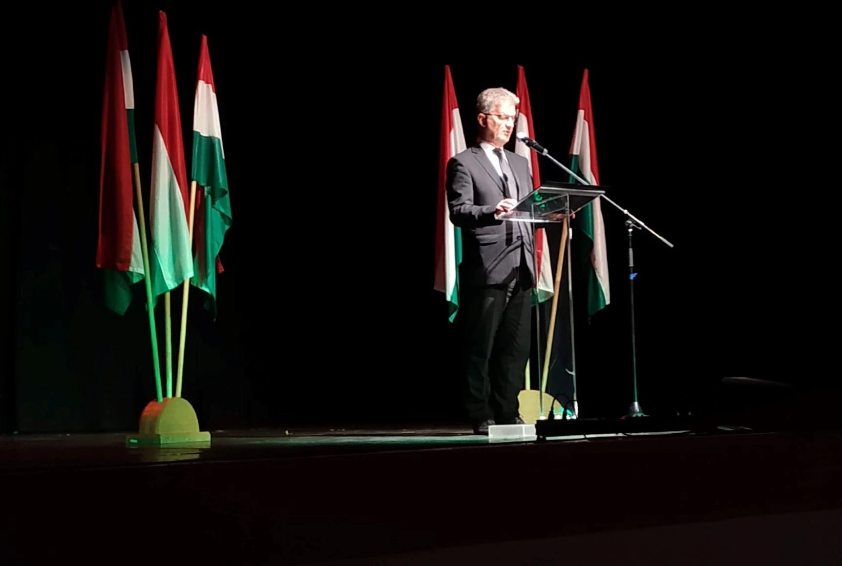 Az Aradi vértanúk ligetében szervezett koszorúzást követően a Csabagyöngye Kulturális Központ hangversenytermében, telt ház előtt Szarvas Péter polgármester úr mondott ünnepi beszédet. A városvezető kihangsúlyozta: „Ma nem kell életünket áldozni a szabadságért. A mi feladatunk azonban nem kevésbé fontos, és nem nélkülözhető. Az emlékezés kötelessége a miénk. Az, hogy megálljunk egy pillanatra, és fejet hajtsunk. Ha a kivégzett mártírok onnan fentről letekintenek, lássák azt, hogy a magyar haza örökké emlékszik hőstetteikre.”