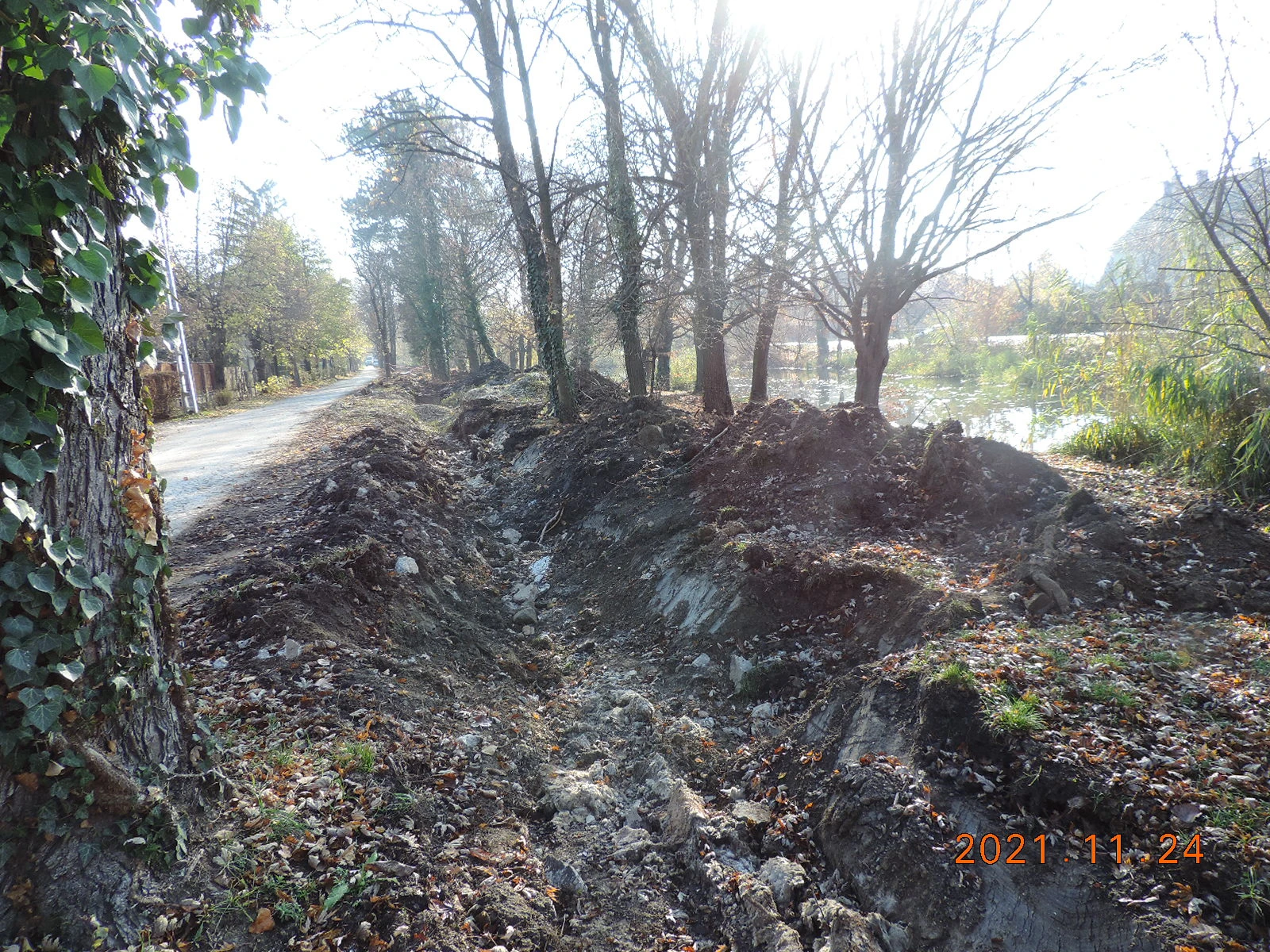 A Kígyósi úton a zárt csapadékcsatorna fektetése befejeződött, a kivitelező a tereprendezést végzi.