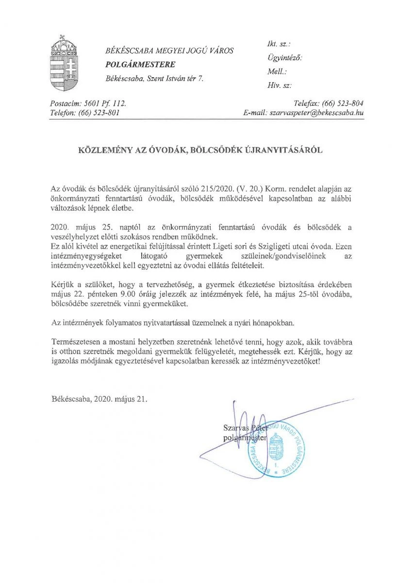 Önkormányzati fenntartású óvodák és bölcsődék működési rendje