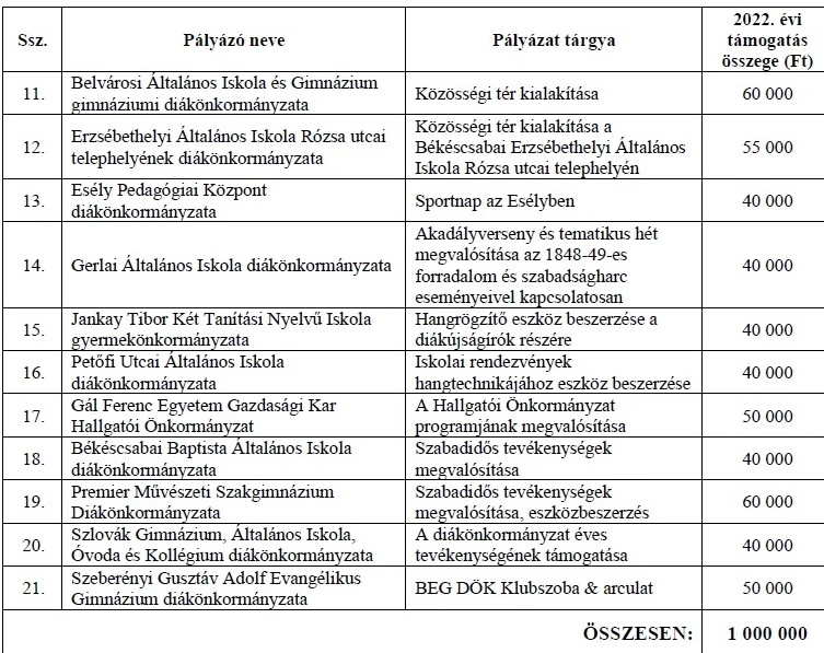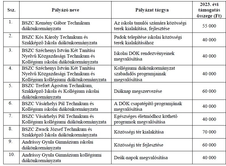 A 2023. évi Ifjúsági pályázatok keretén belül támogatásban részesített szervezetek