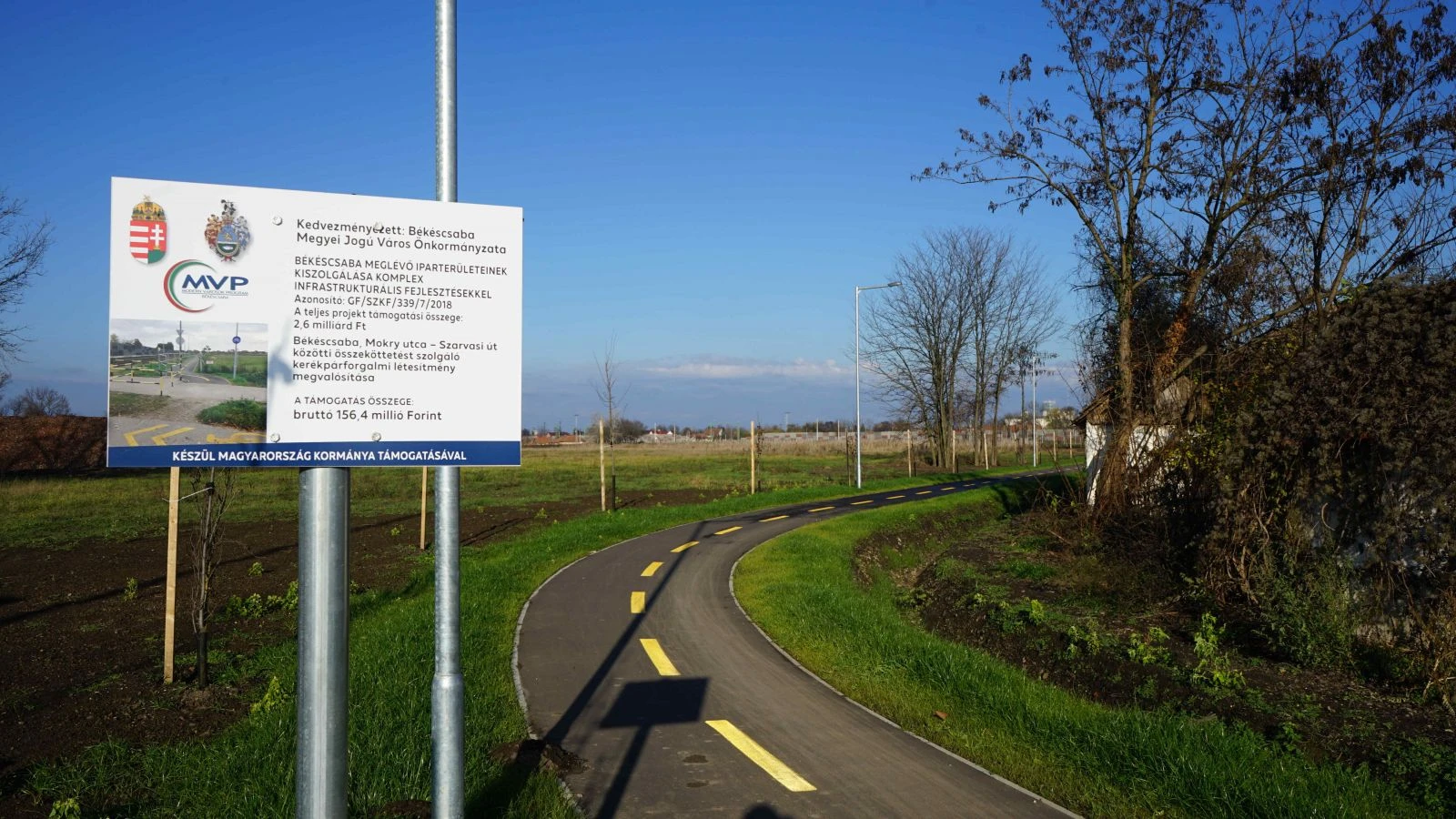 Közel 700 méter hosszúságban elkészült a Szarvasi út és a Mokry utca közötti kerékpárút, valamint a Mokry utcában 1096 méter hosszúságú szakaszon kerékpáros nyom került felfestésre. A közlekedés biztonságának növelése érdekében a megépült kerékpárút mentén a közvilágítás is kiépítésre került. A kivitelezési munkák 156,4 millió forint összegből valósultak meg.