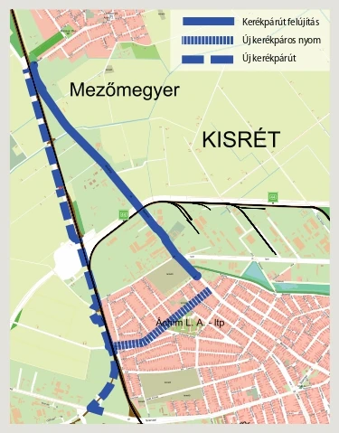 A Modern Városok Program keretében megindul a Mezőmegyerre vezető kerékpárút fejlesztésének első üteme, amely során a Berényi úton a Széna utcától a Mezőmegyeri gyalogos és kerékpáros aluljáróig 2 km hosszú szakaszon a meglévő 1,7-1,8 méter szélességű kerékpárutat a belterületi szakaszon 2 méter, a külterületi szakaszon 2,25 méter szélességűre bővítik ki, illetve újítják fel.